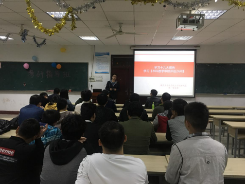 11月7日晚7:00,我院研究生第一党支部于学院C216会议室召开支部党员大会。大会的主要议题是讨论本支部黄成、赵梦婷、张文进三名发展对象入党事宜以及十九大报告与湖北大学《本科教学审核评估24问》的学习讨论。会议由党支部书记高思主持召开。