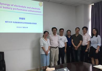 2018年6月2日下午,南开大学李福军研究员应邀来我校做题为“Synergy of electrolyte and electrode for battery performance enhancement”的学术报告,报告在我校化学化工学院D320会议室,报告由28365bet副院长任君教授主持。